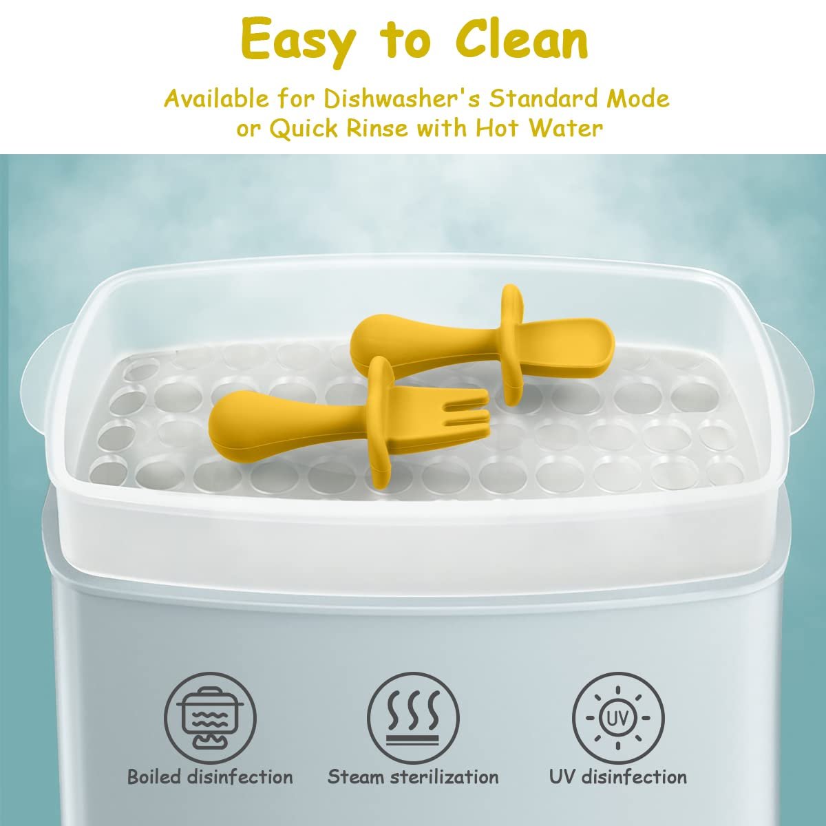 EASY TO CLEAN & STORE – Cleaning The Silicone Is Super Easy, Dishwasher-Safe Toddler Spoons And Forks Don’T Add To Your Workload, 4 Pack Which Can Meet Different Needs For Daily Use And Carry Out, Which Can Be Easily Tucked Into Lunchboxes For On-The-Go Meals.