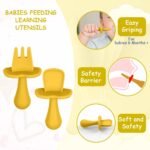 SELF-FEEDING UTENSILS – Baby Spoons Ergonomically designed short round handle, suitable for babies about 6 months old to learn self-feeding, encouraging baby-led weaning and giving your wee one a chance to learn on their schedule.