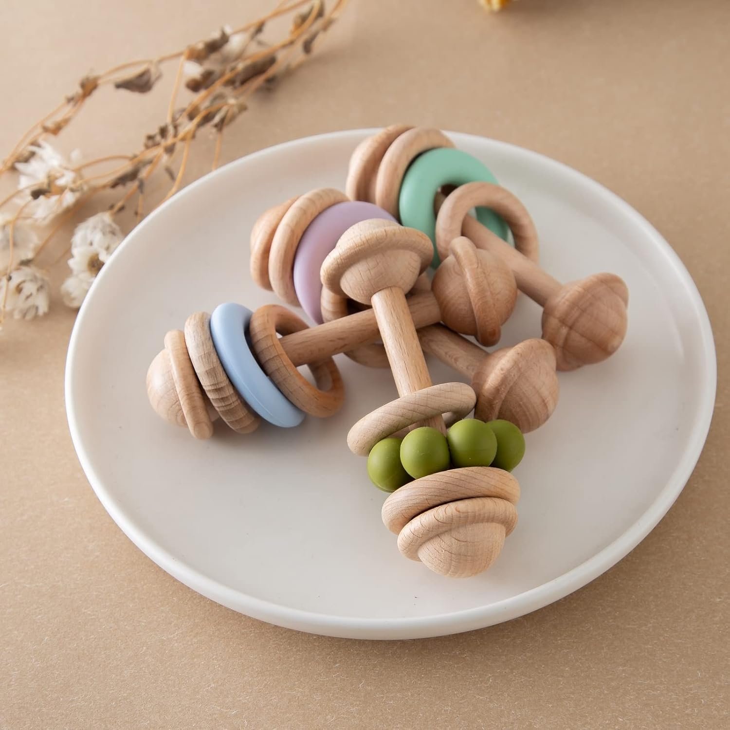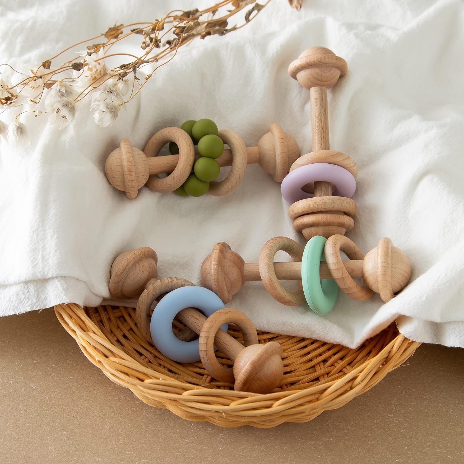 Helpful Rattle Toys – The wood rings will make a crisp sound when baby shake the rattle, which can attract baby’s attention, help baby focus while nursing or stay happy.