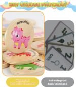 🦕【Why Choose Protado Matching Card】Compared with the original paper memory cards, our memory match cards have the following advantages. The material is hard and not easy to damage. The wooden and polished outer layer is waterproof and dirty resistant. 5.2 cm diameter and 0.5 cm thickness, perfect for children to hold in the palm without bending, wearing, or tearing.