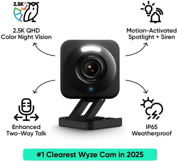 【Indoor/Outdoor Versatility】 – Engineered for durability with IP65 weather resistance, Wyze Cam v4 is an ideal security camera, offering reliable house surveillance in any weather. It’s both an indoor camera and outdoor security camera. Wyze Outdoor Adapter (sold separately) is required for Outdoor use.