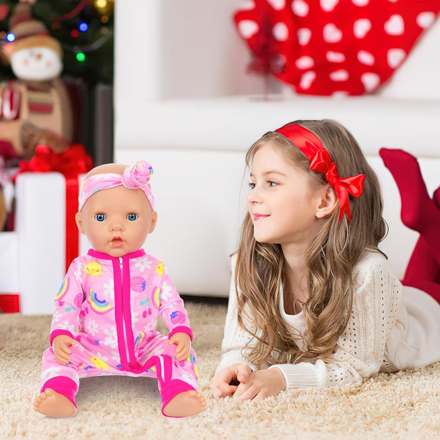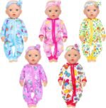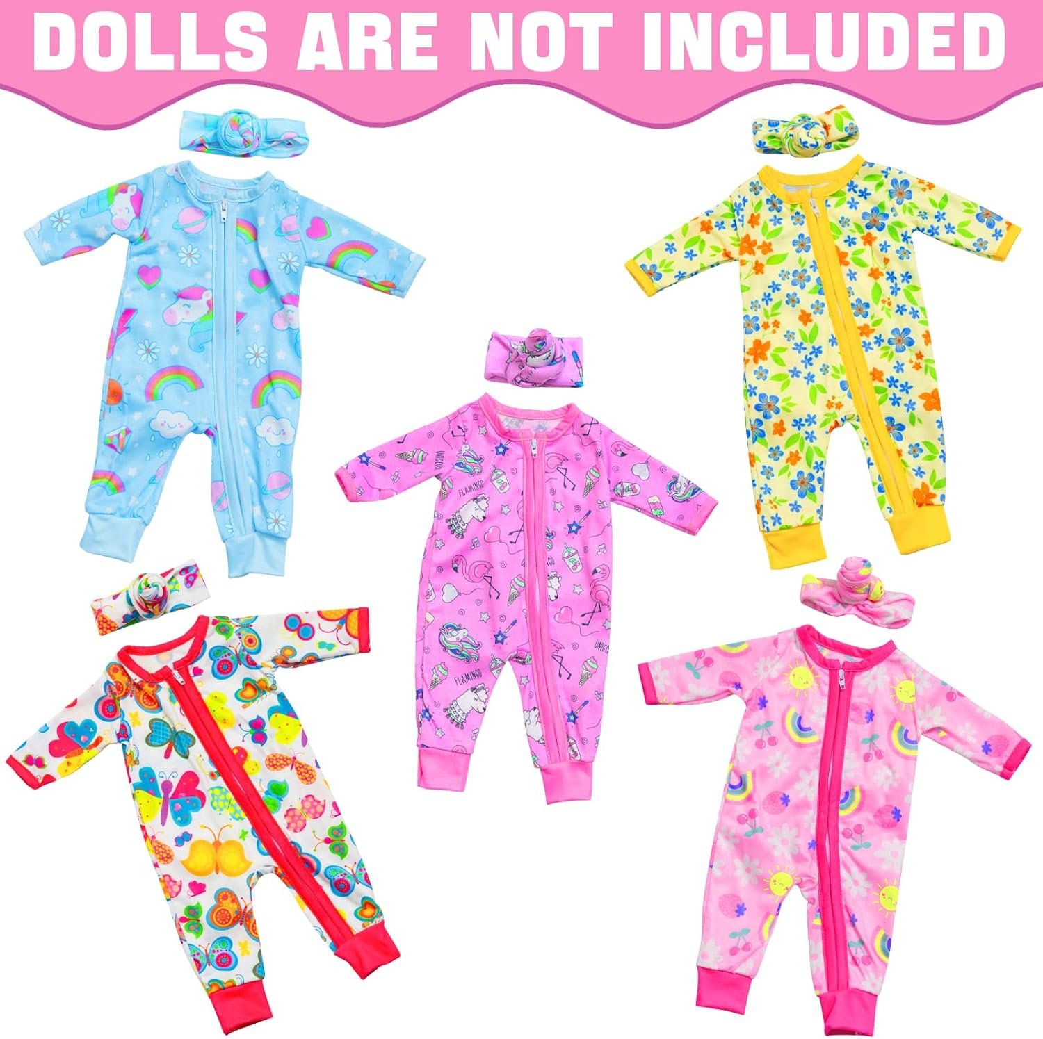 【Package Include】5 sets 14-18 inch cute design baby doll clothes and headhand. These five jumpsuits are fixed style.(Please kindly know that dolls are NOT included)
